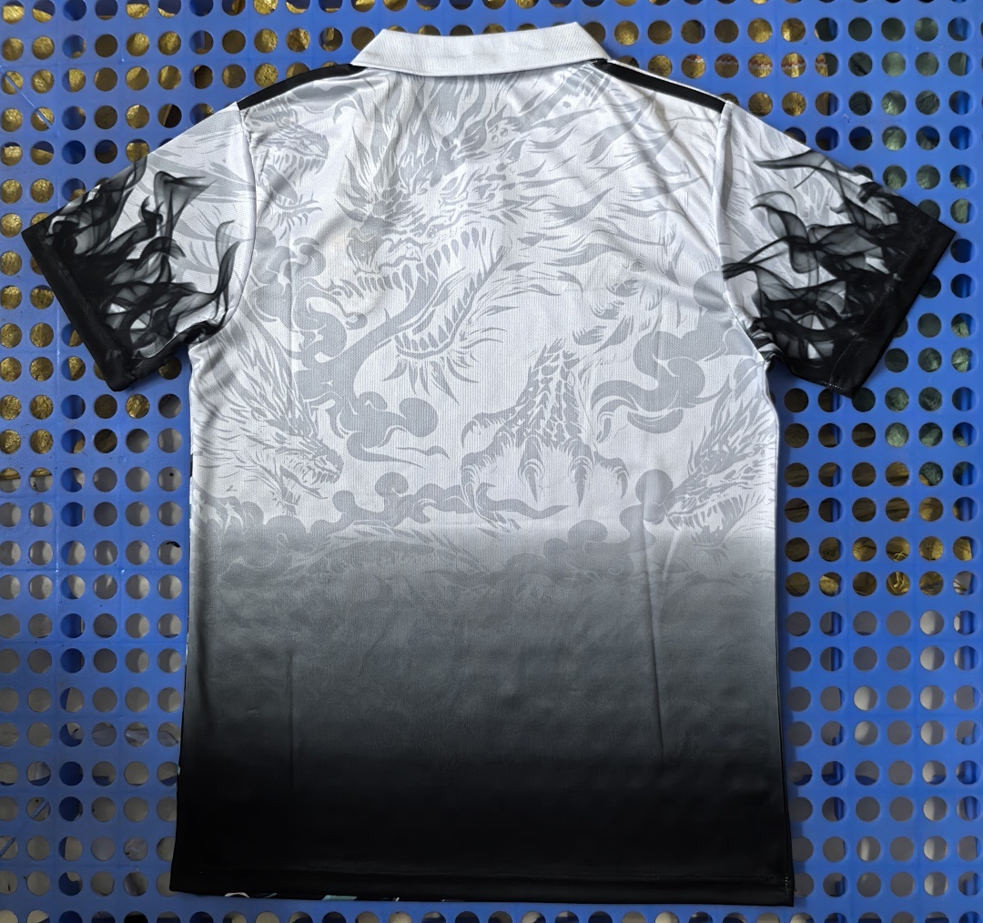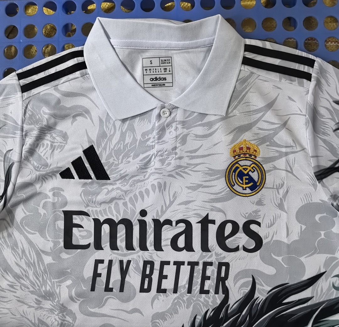 2025 Real Madrid Spray Dragon White POLO2025 Real Madrid Spray Dragon White POLO